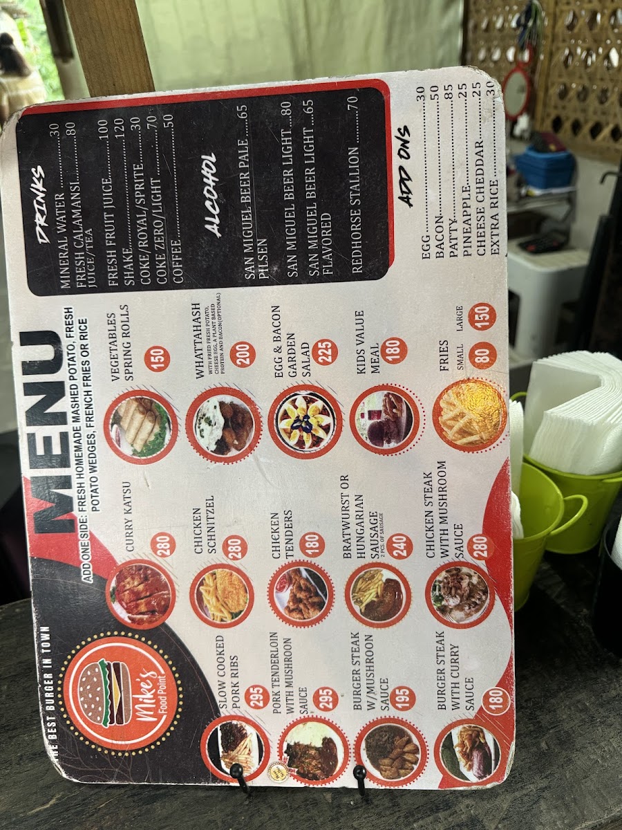 Welcome to Mike’s Food Point, a hidden gem located at P, 4 Daorong Blvd, Panglao, Bohol. This hamburger restaurant is the perfect spot for those craving mouthwatering, finger-licking burgers and sausages without hurting the wallet.